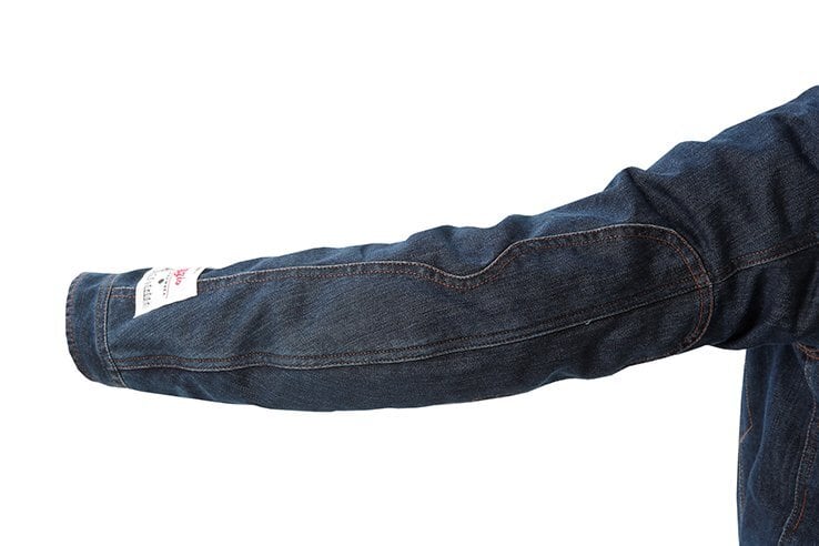 腕の可動域が通常の服よりも多く、服が体へ与える負荷が少ない構造のブルゾンです。